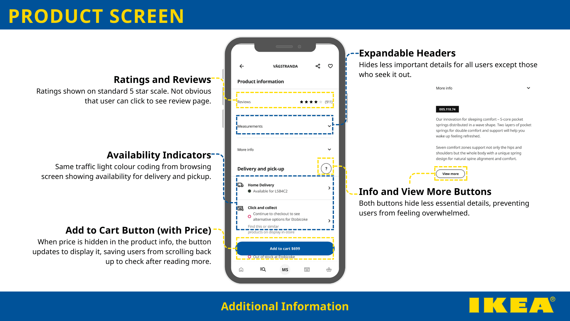 • Provide accessible product information at key touchpoints by ensuring pricing, availability, dimensions and assembly details are easy to find in store